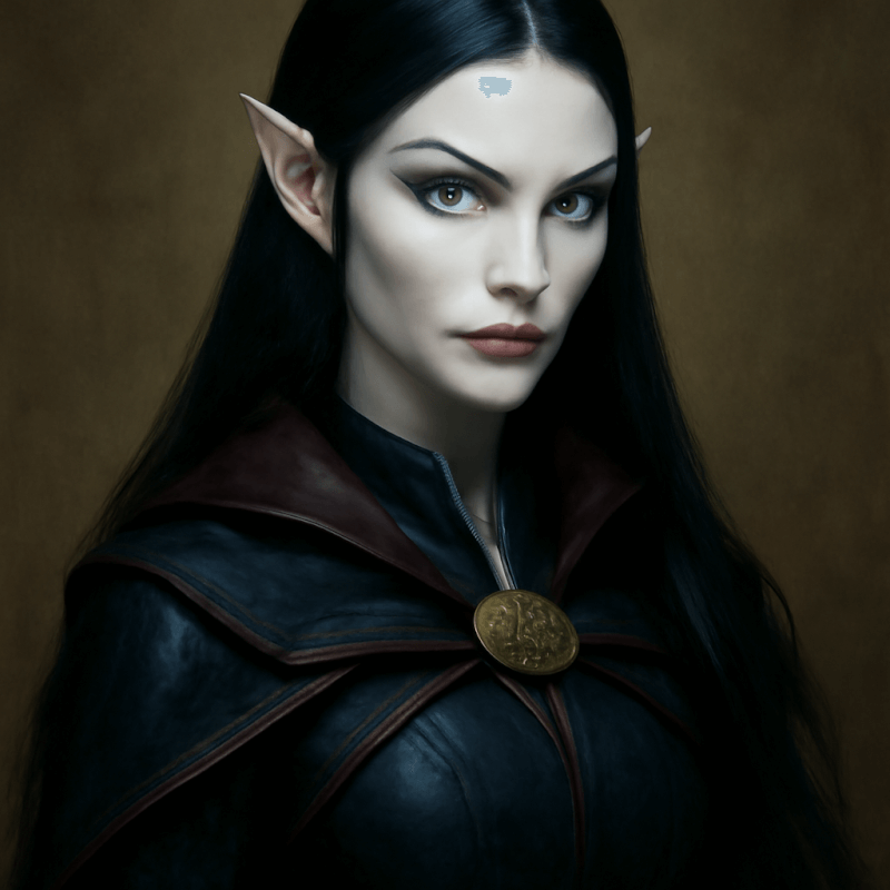 Sleek, porcelain-skinned with icy blue eyes; an alluring yet calculating presence masking razor-sharp ambition.