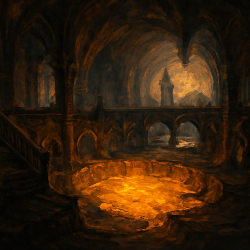 Dim torchlight flickers over a packed underground cavern, the air thick with sweat, excitement, and the scent of spilled ale; the clang of weapons and roars of the crowd echo through stone corridors.
