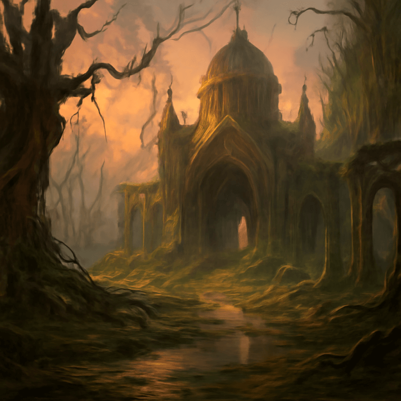 Moss-slick stones, damp decay, the faint whisper of long-lost prayers echoing through rotted beams.