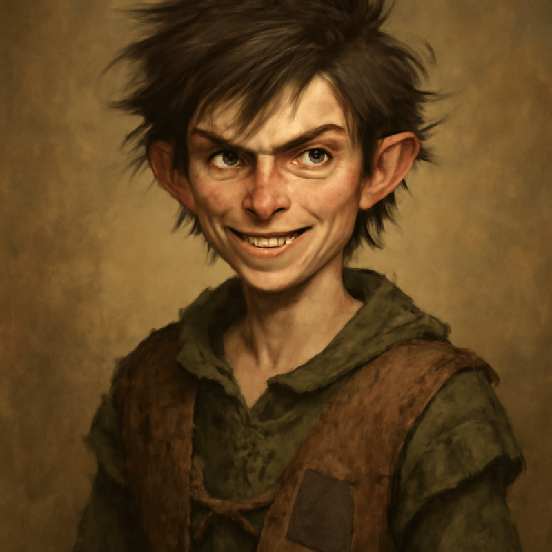 A wiry youth with sharp eyes, quick to grin and quicker with words, wearing patched clothes and a smudge of dirt across their cheek.