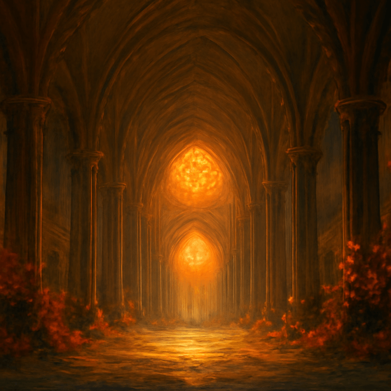 - Pillars veined with glowing runes emitting a warm, throbbing light