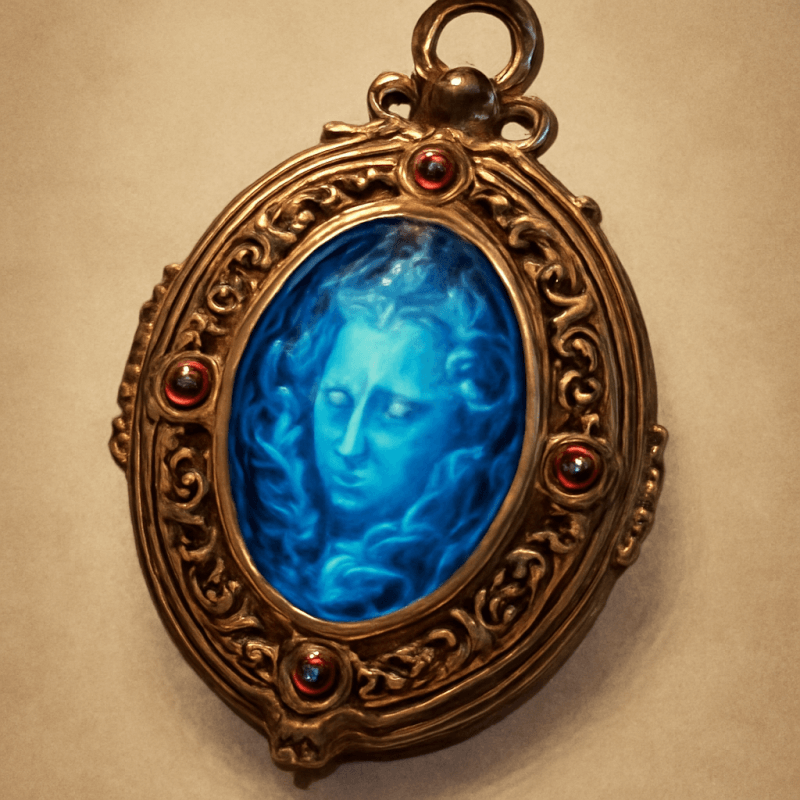 An ornate locket holding a restless soul, capable of granting glimpses into the afterlife or sapping spiritual energy—a potent and dangerous artifact.